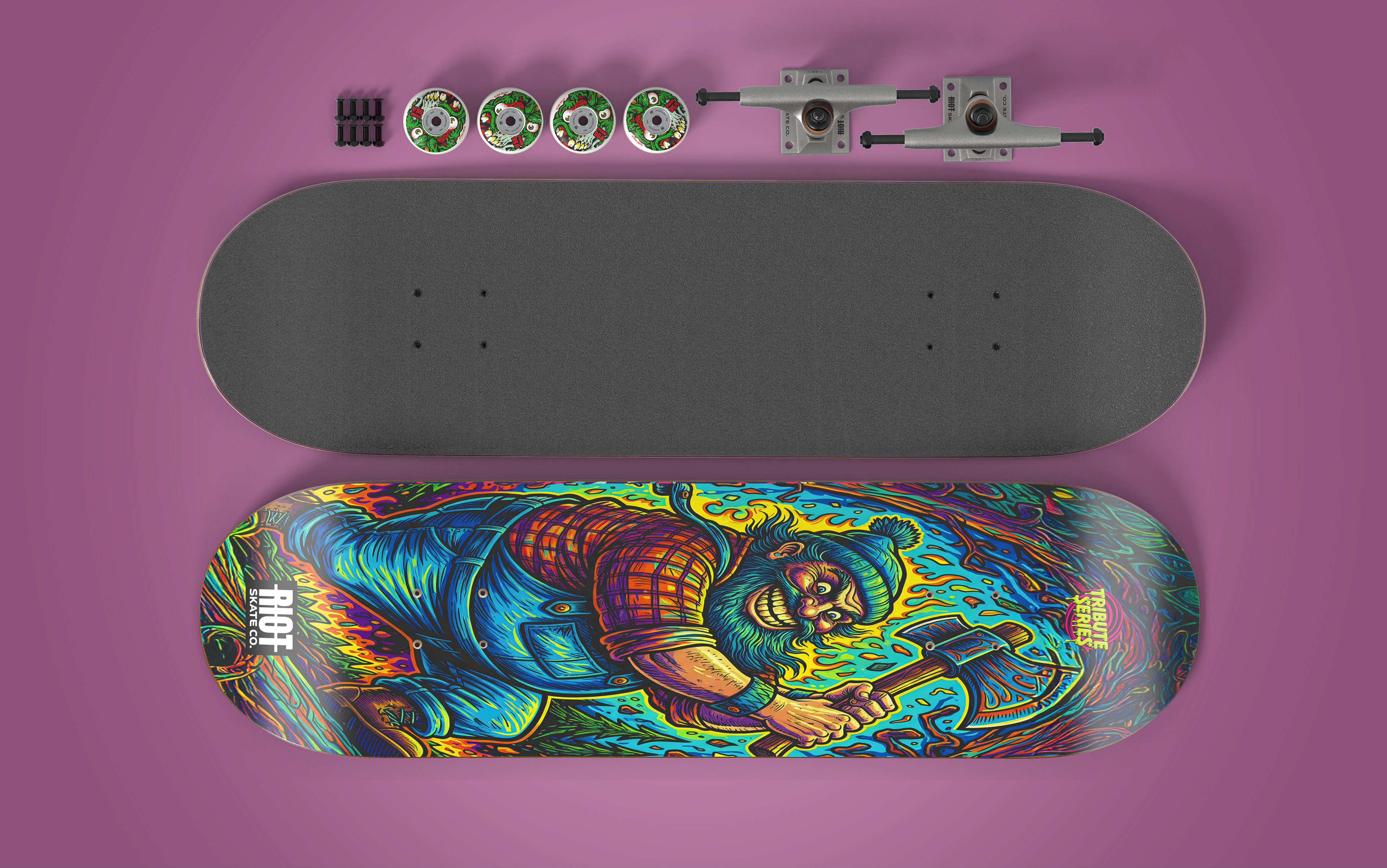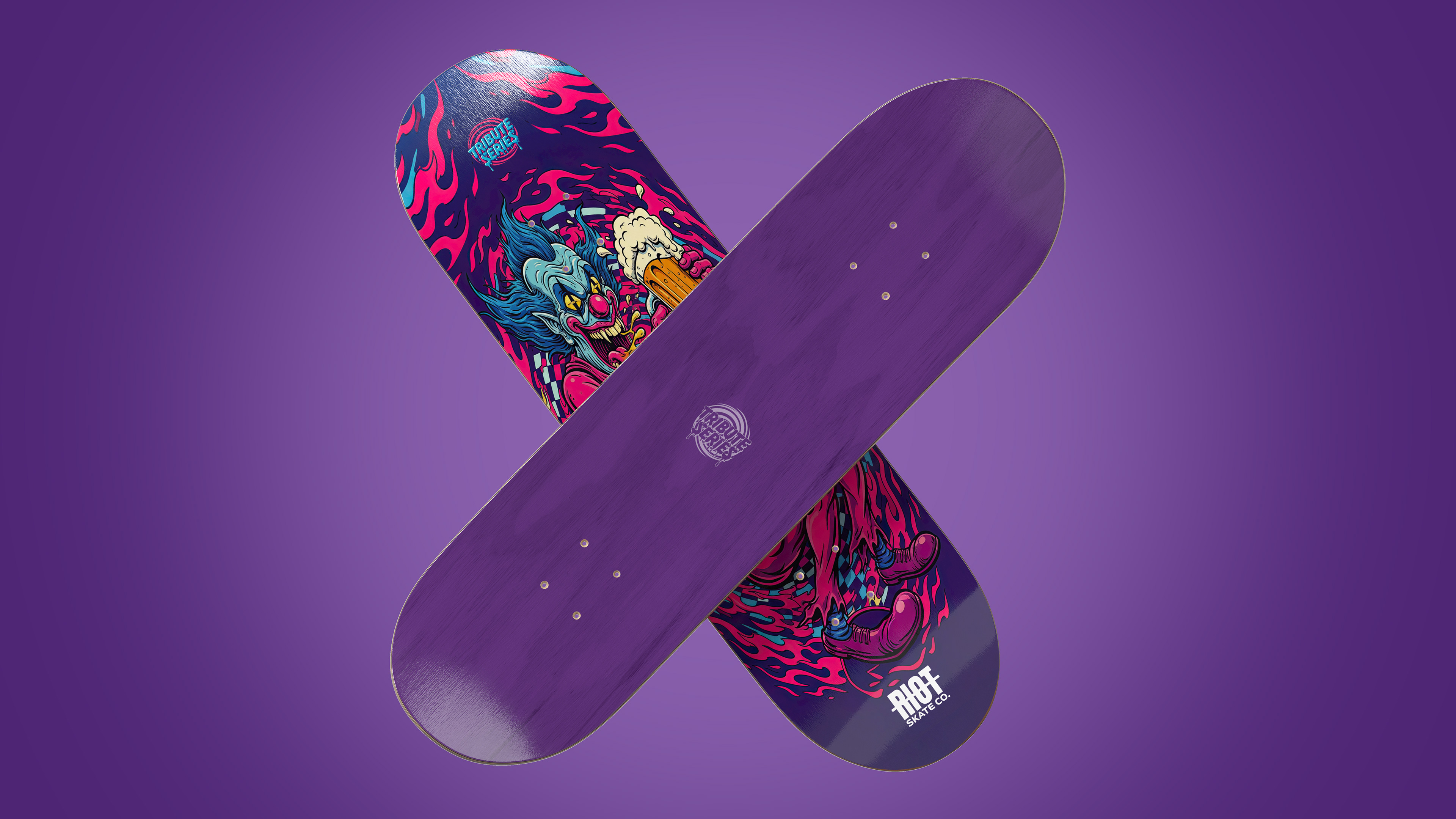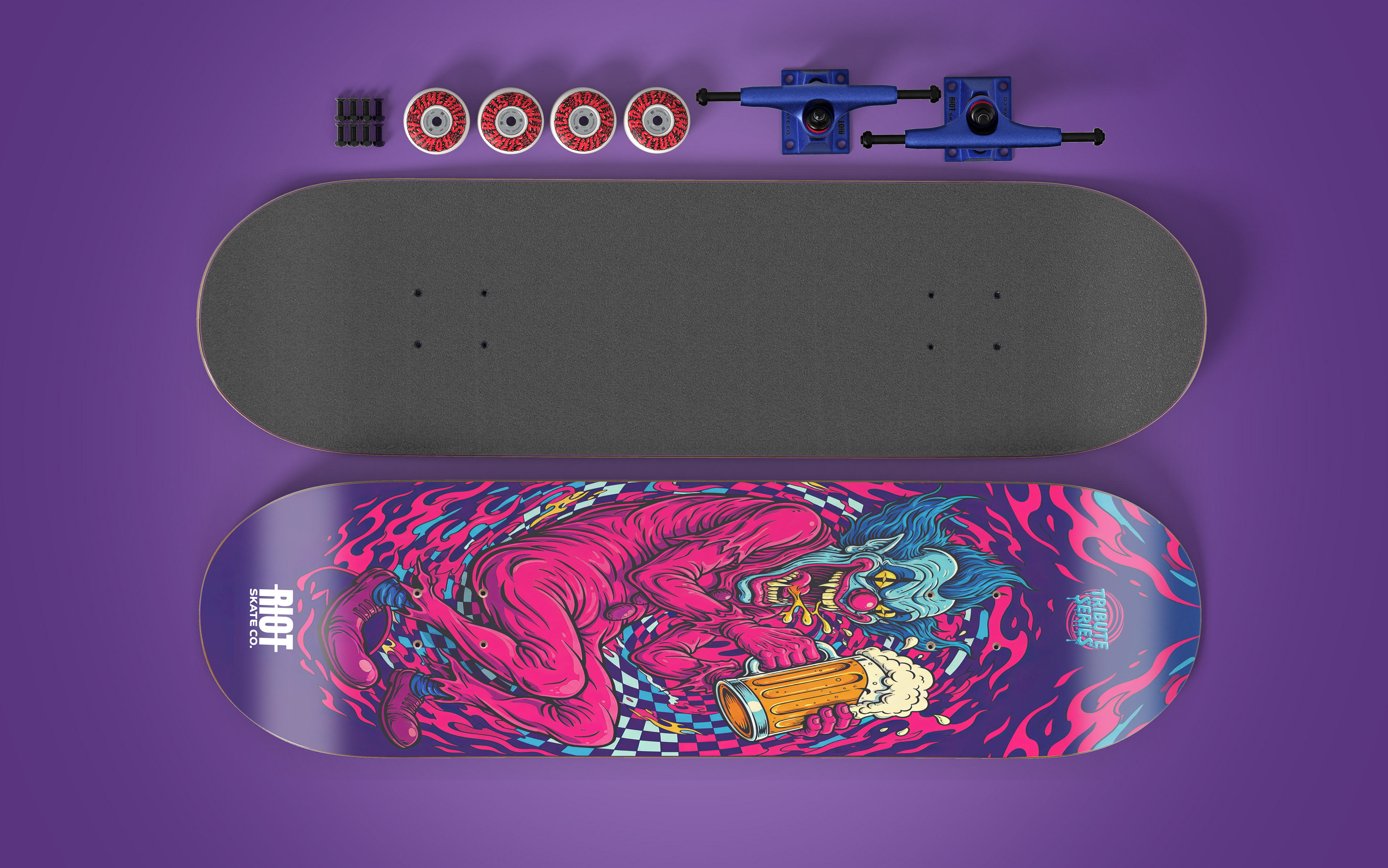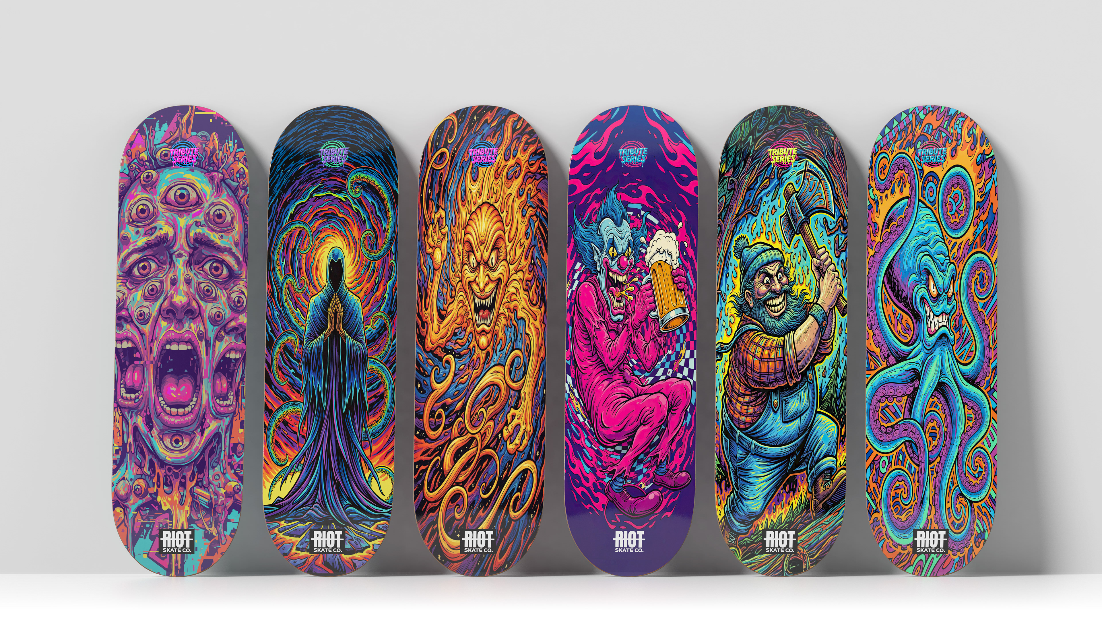 I was commissioned by the team at RIOT SKATE CO. to create a set of six skateboard decks that pay homage to the iconic visual language of Jim Phillips’ 1980s skateboard graphics. This project celebrates an era where skate art was loud, rebellious, and unapologetically expressive - designed to hit just as hard on the wall as it does under your feet.