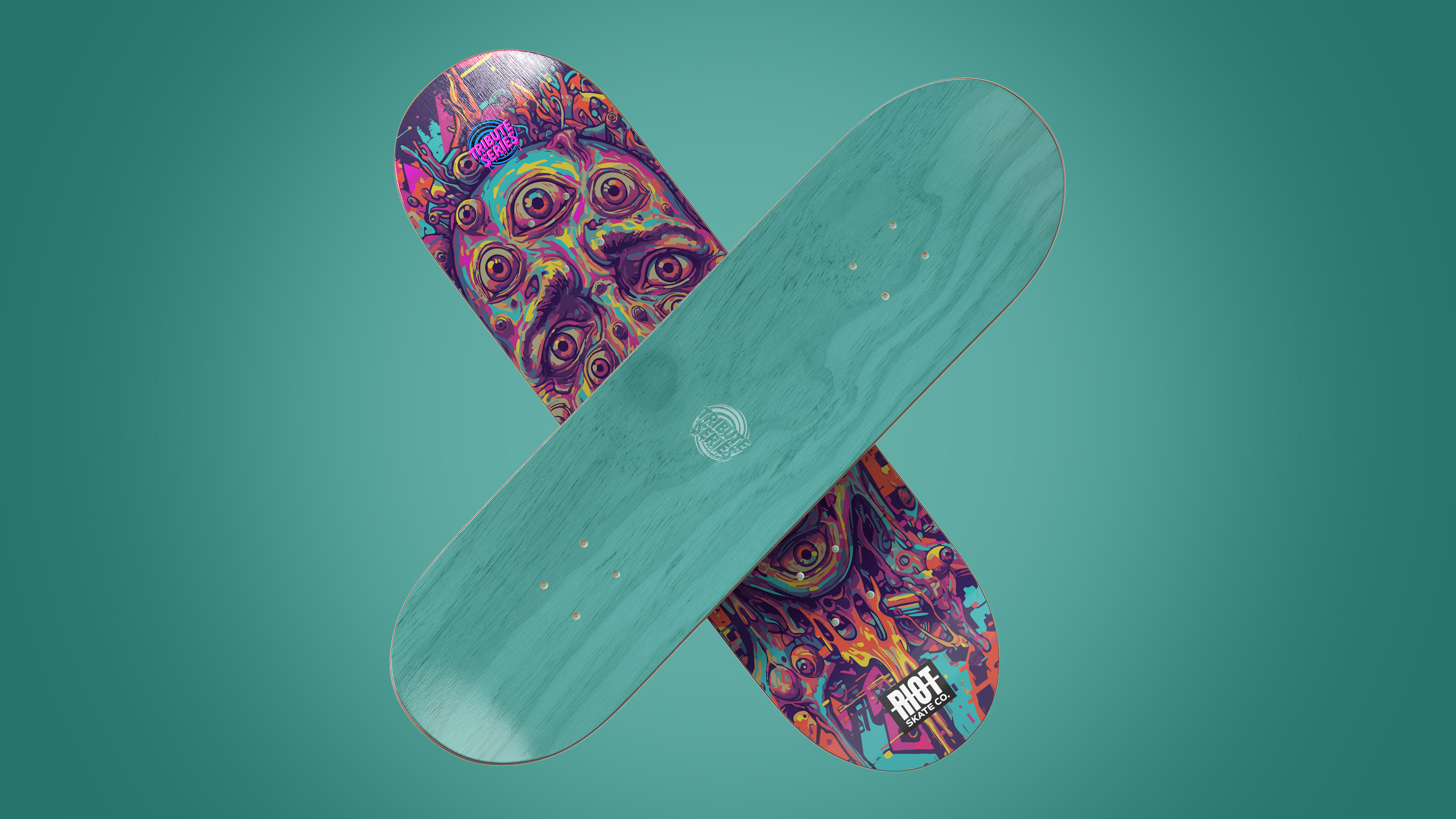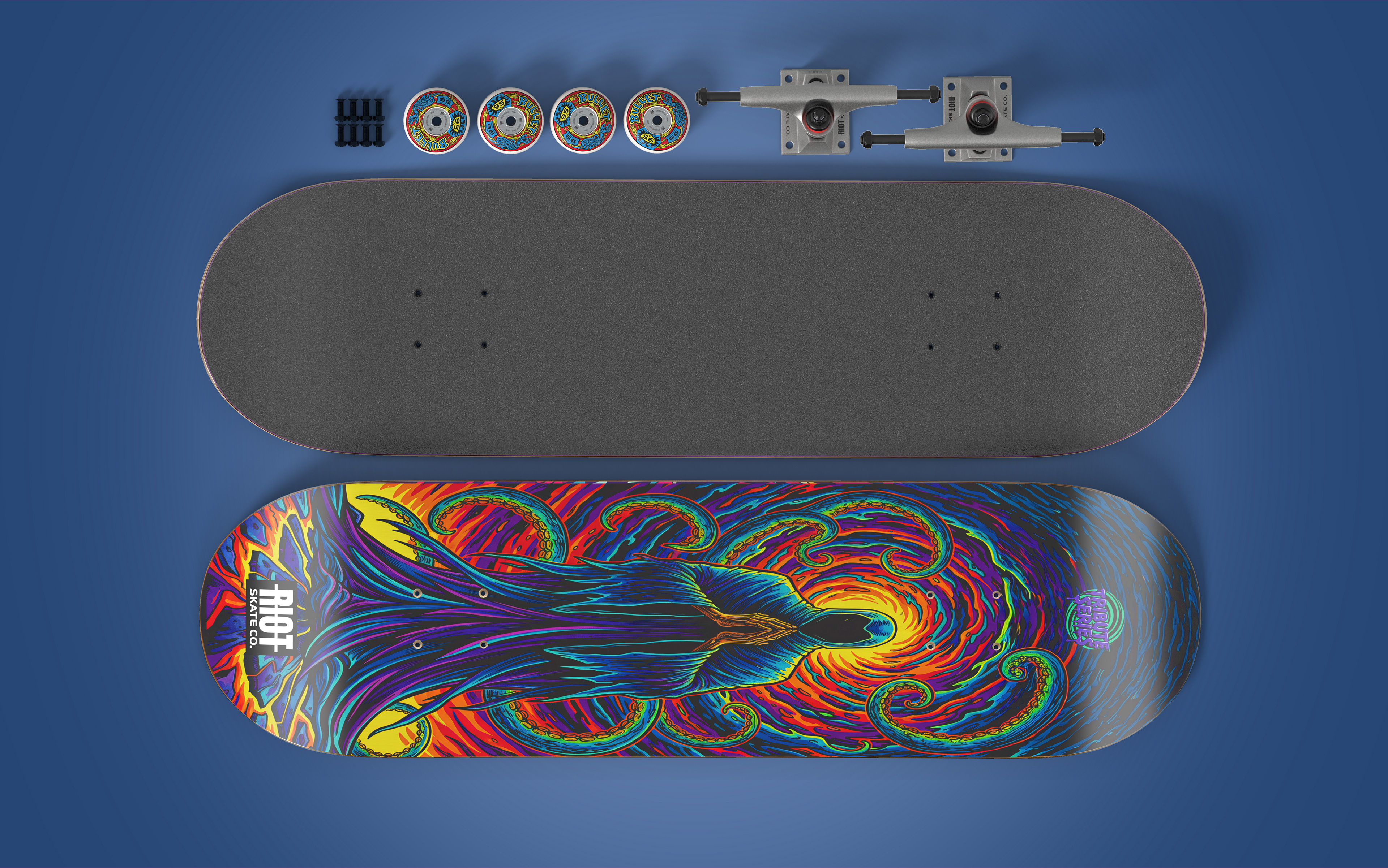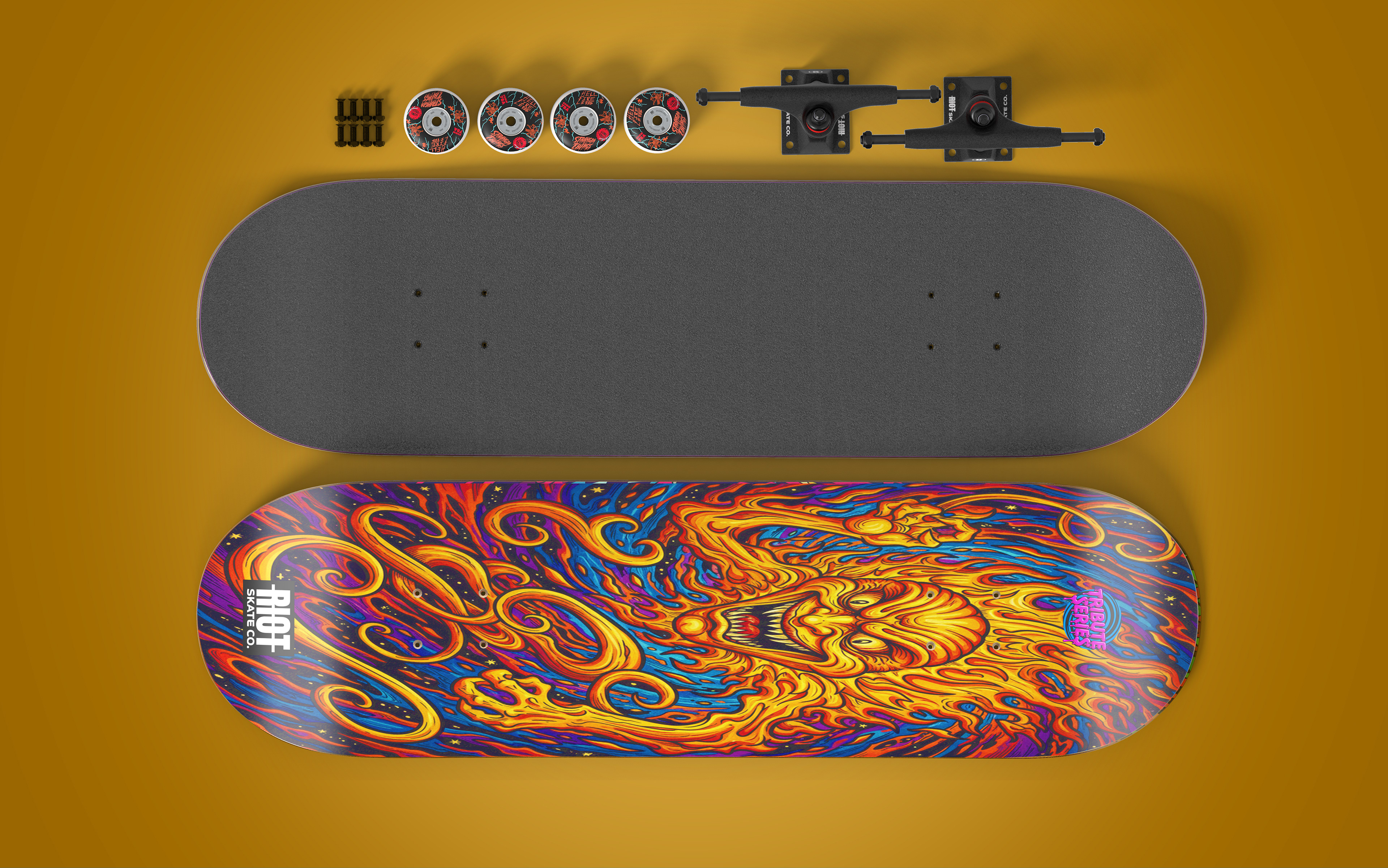 I was commissioned by the team at RIOT SKATE CO. to create a set of six skateboard decks that pay homage to the iconic visual language of Jim Phillips’ 1980s skateboard graphics. This project celebrates an era where skate art was loud, rebellious, and unapologetically expressive - designed to hit just as hard on the wall as it does under your feet.