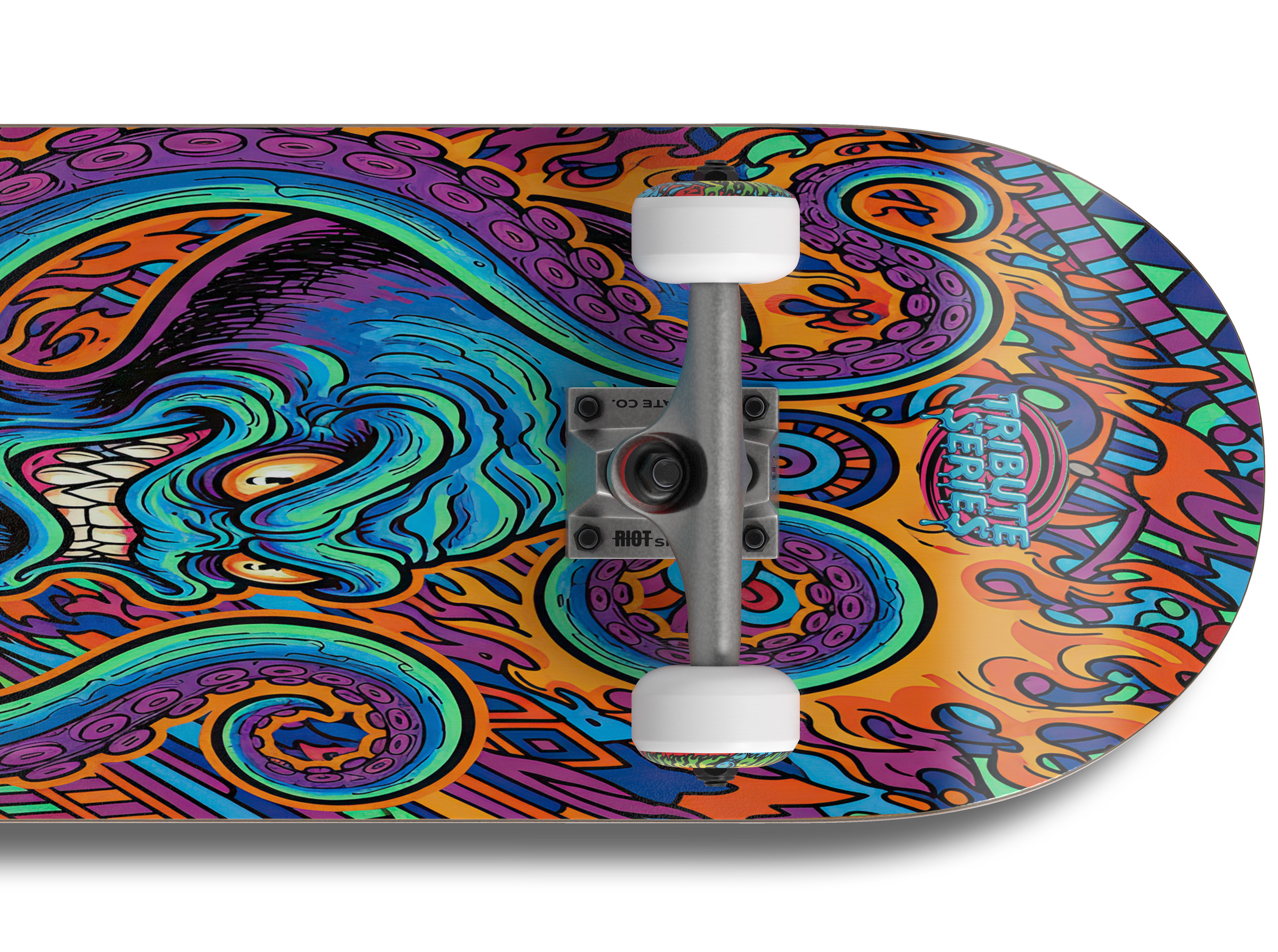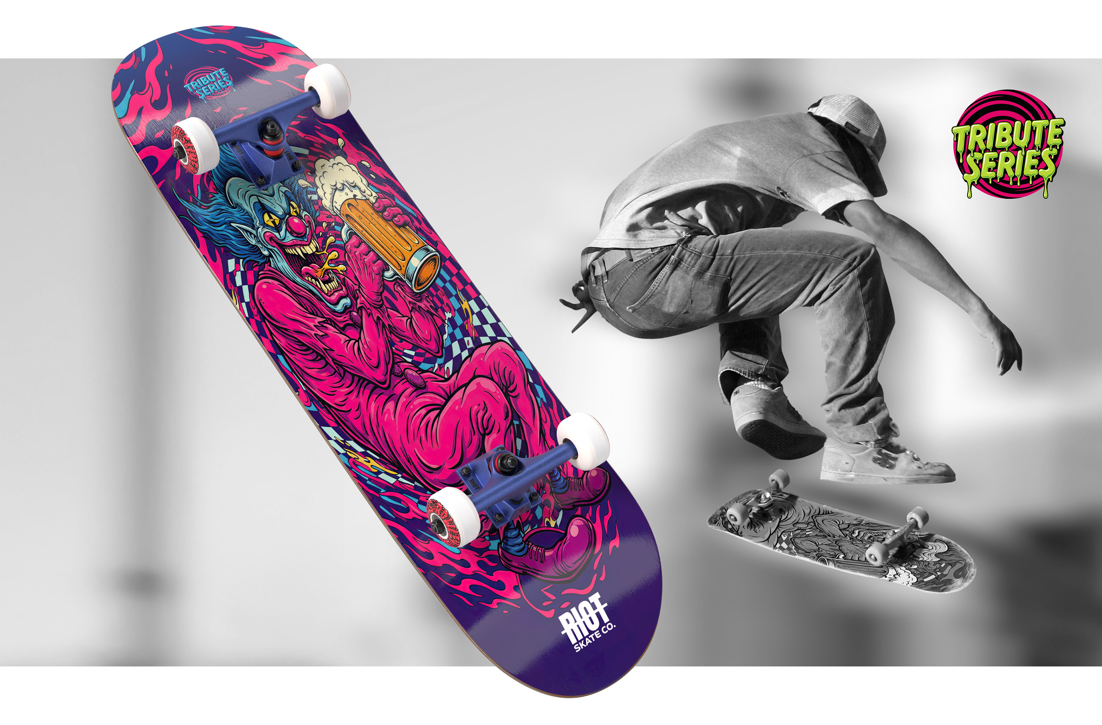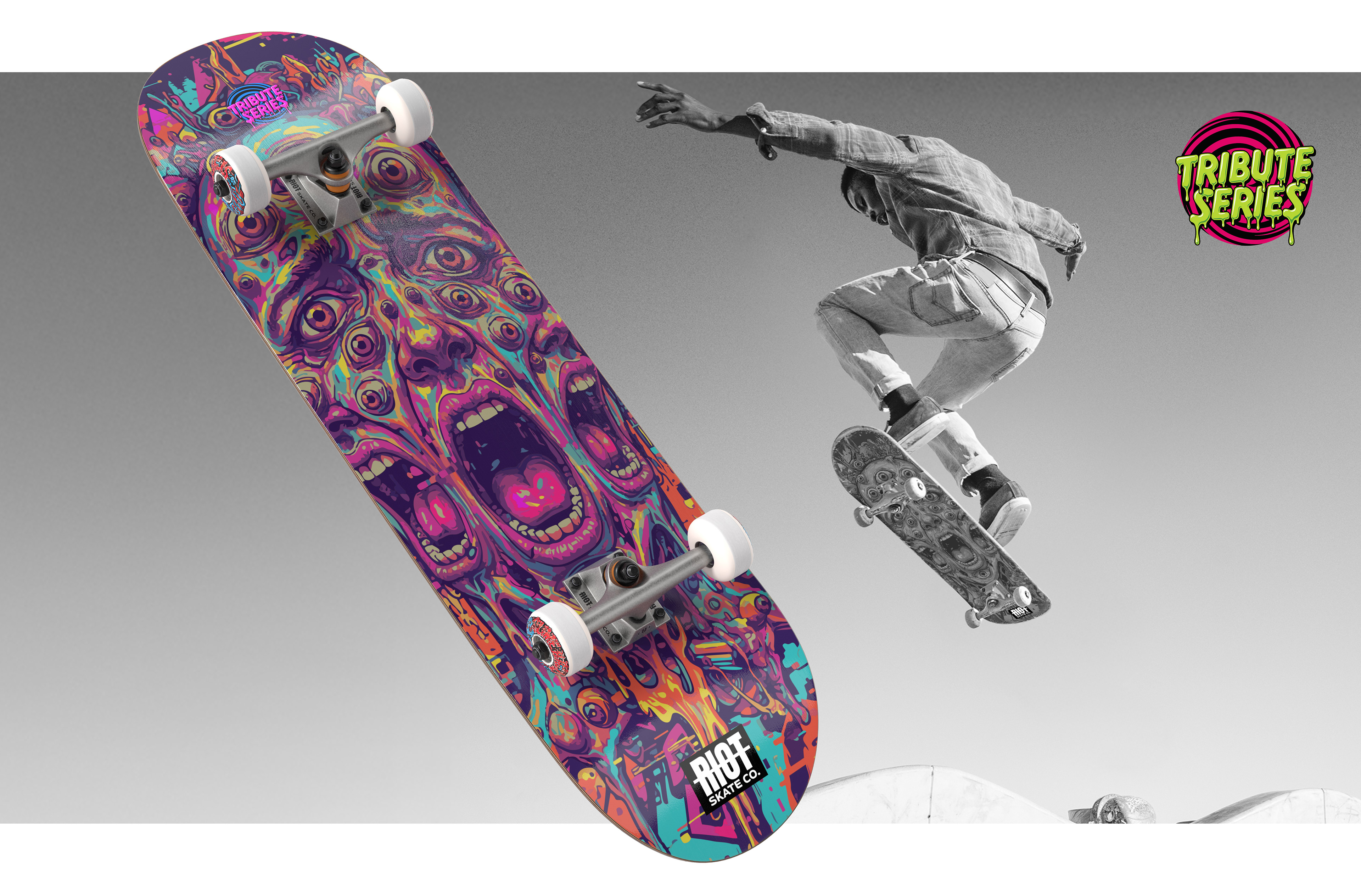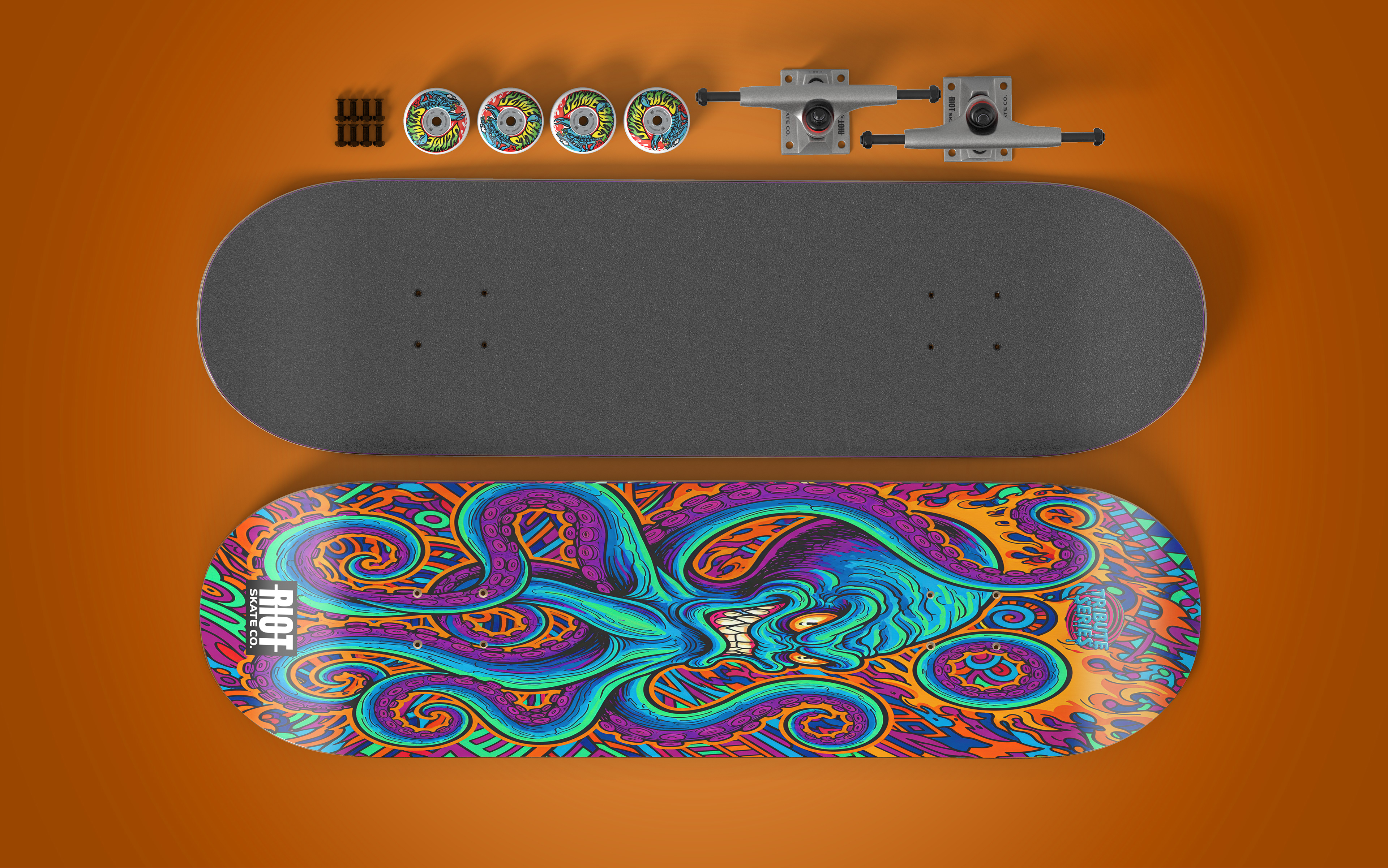 I was commissioned by the team at RIOT SKATE CO. to create a set of six skateboard decks that pay homage to the iconic visual language of Jim Phillips’ 1980s skateboard graphics. This project celebrates an era where skate art was loud, rebellious, and unapologetically expressive - designed to hit just as hard on the wall as it does under your feet.